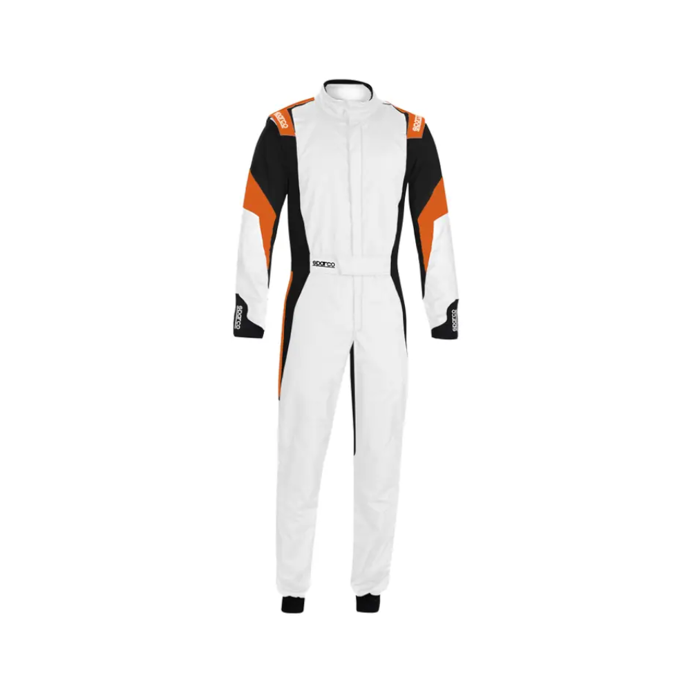 The Sparco Competition race suit features a stylish three-colour design made from latest technical fabrics which offer an excellent compromise between weight and breath-ability. The clean quilted, design gives a smooth high-quality finish, whilst maximising air flow through Sparco’s latest 2-layer Meta/Para Aramid material with ultra-lightweight seams. The Sparco Competition race suit features floating sleeves with pre-formed arms to aid flexibility and comfort on the driving position. The suit also features an adjustable Velcro belt, soft knit collar, concealed side hip pockets and all new elasticated seamless soft cuff design allowing for a superior fit and comfort between suit and glove.