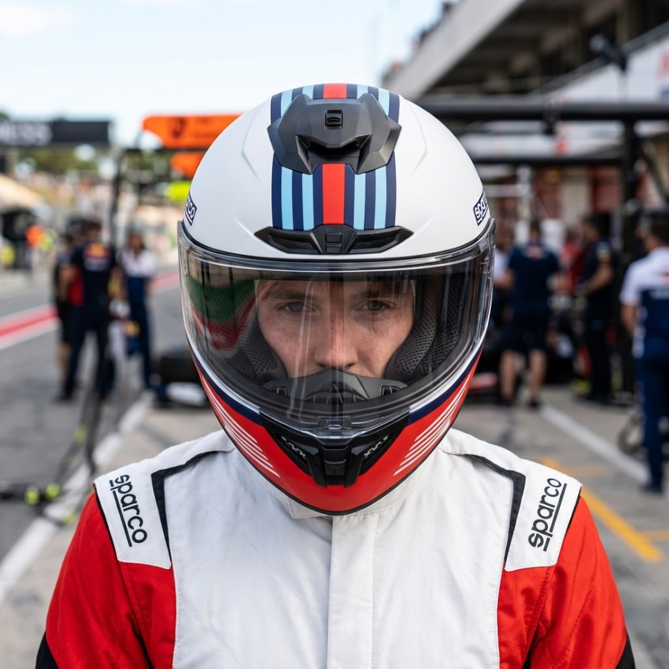 The Sparco Martini Racing X-Pro Helmet is designed to deliver reliable head protection for indoor karting and track day use, combining modern safety standards with a classic motorsport aesthetic. Featuring an ECE 22.06-approved thermoplastic shell, this helmet offers a lightweight yet durable construction that helps reduce neck strain during longer driving sessions while maintaining consistent comfort.