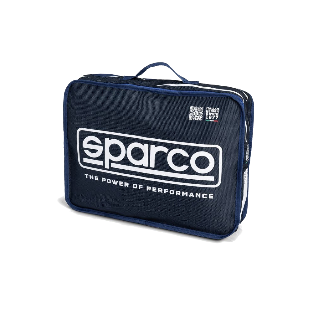 Clear Sparco branding on the exterior makes the bag easy to identify in shared or busy storage areas.