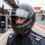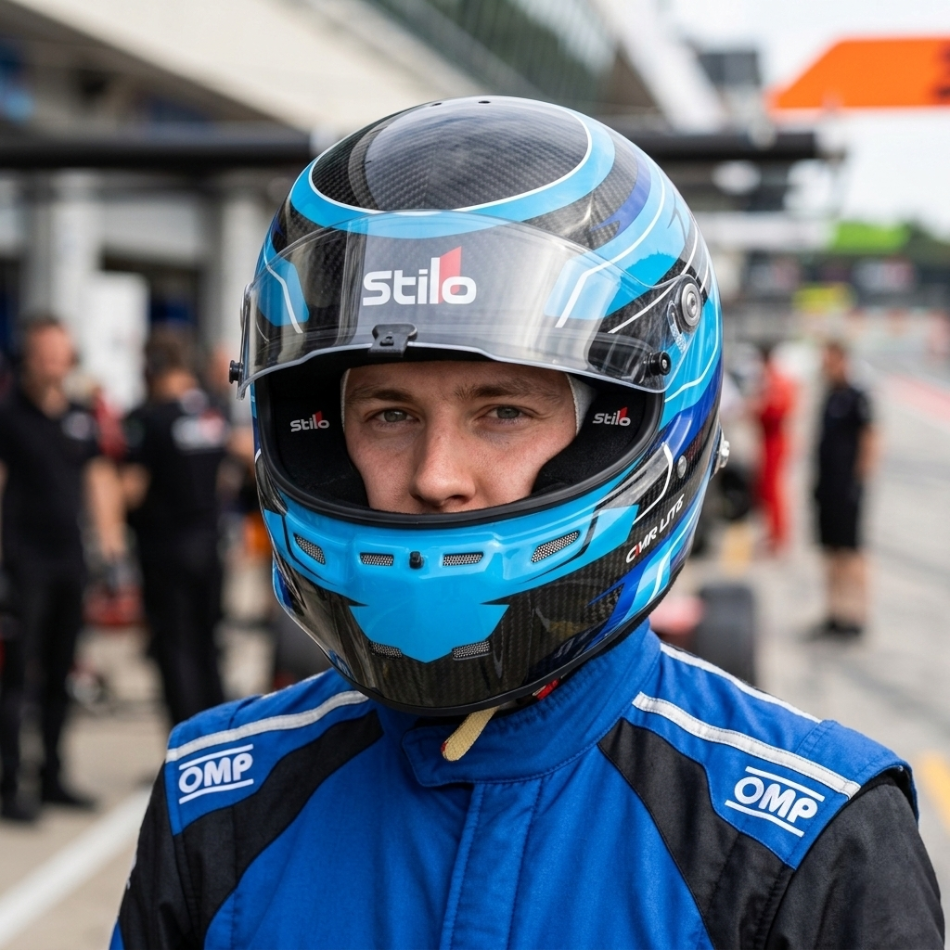 - Extended downward field of vision – Enlarged visor aperture improves visibility of the steering wheel and track surface, aiding precision when braking and entering corners.